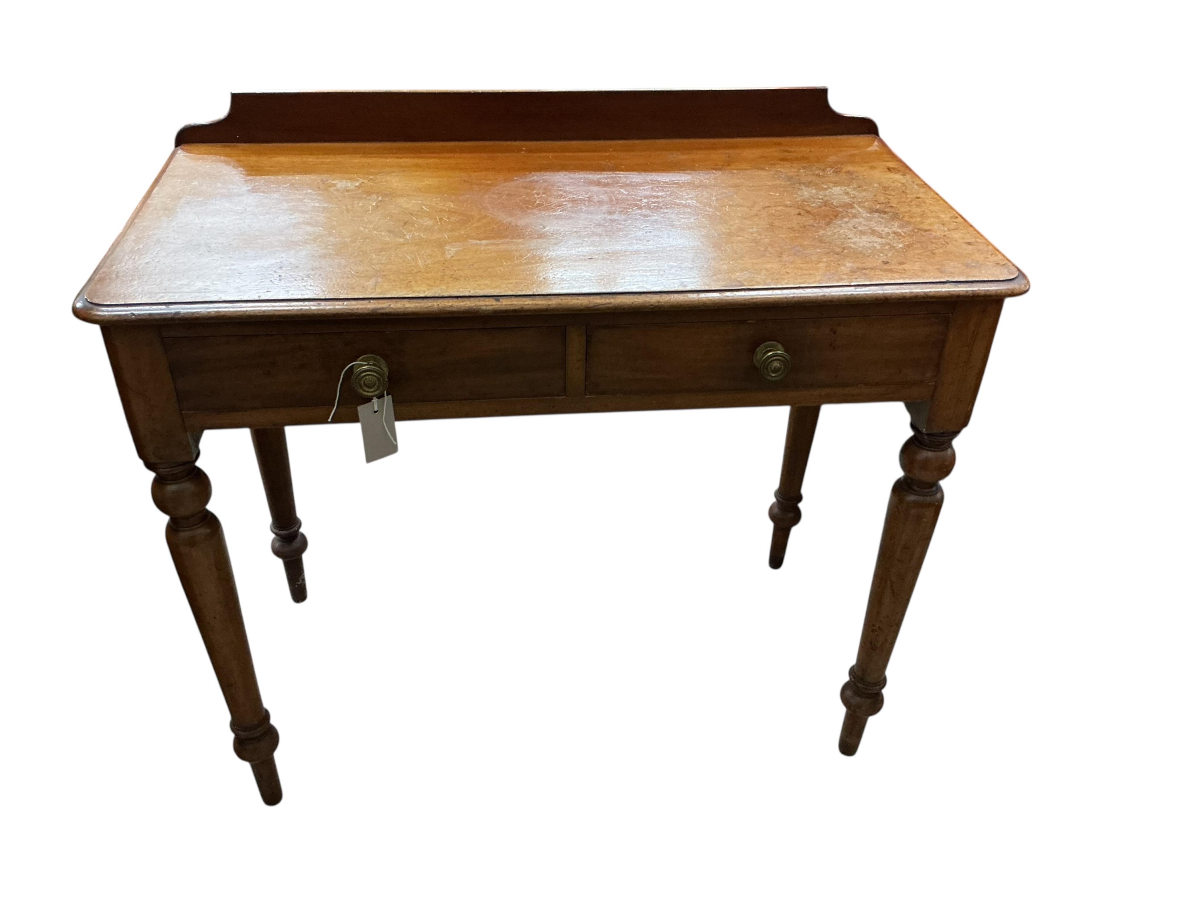 A Victorian mahogany two drawer side table, width 91cm, depth 46cm, height 80cm