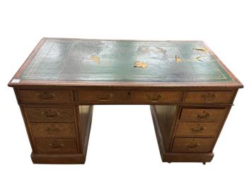 Lot 70 , A Victorian oak pedestal desk, width 136cm, depth 72cm, height 75cm