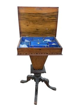 Lot 2070 , A Victorian parquetry inlaid walnut games/work table, width 48cm, depth 35cm, height 78cm.