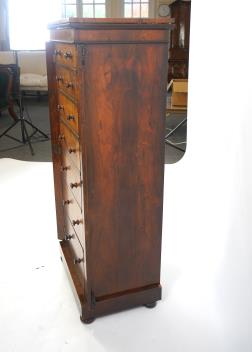 A Victorian rosewood Wellington chest fitted seven graduated drawers with acanthus carved twin locking bars on plinth base, 59.5cm wide, 43cm deep, 140cm high