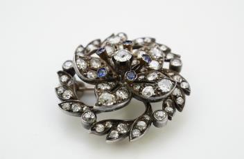 Lot 707 , A Victorian sapphire and diamond brooch, late 19th century