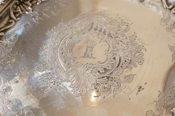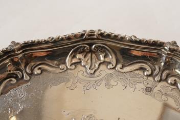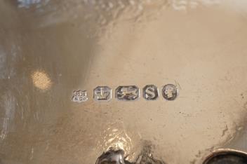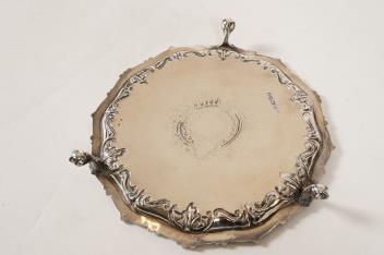 Centre of waiter has a little give, so there may have been a removal/erasure? Minor surface scratches in places, otherwise in good order. Hallmarks clear.