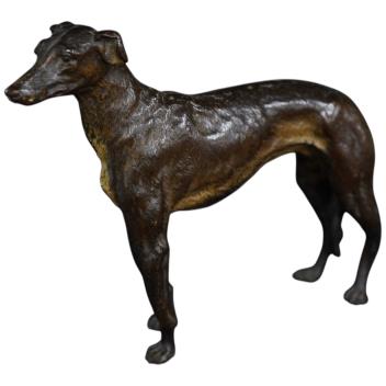 Lot 3193 , A Vienna bronze sculpture of a greyhound c.1900, marked to underside of belly, 12.5cm high, length 15cm.
