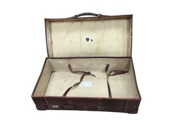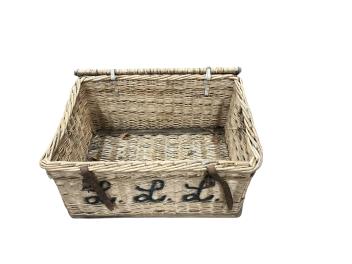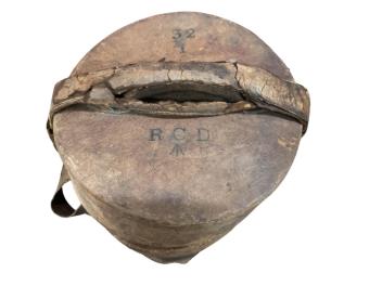 Lot 1003 , A WWI leather artillery shell case carrier, height 98cm, a wicker laundry hamper and a Revelation leather case