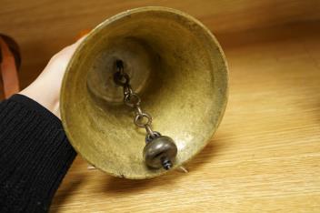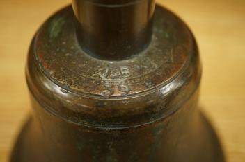 Lot 35 , A WWII bronze ARP handbell with beech wood handle, stamped “Fiddian” to the top of the bell, with ‘J.B. 39’ beneath, and ARP cast into the rim, with ‘8’ applied in drilled decoration above, overall height 25cm, diameter