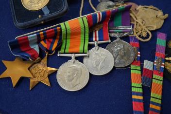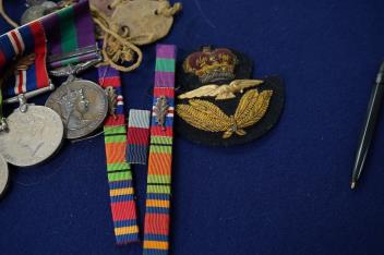 Lot 75 , A WWII medal group awarded to Squadron Leader R.J. Sanceau, R.A.F., including; the 1939-1945 star, the Burma star, the Defence medal, the 1939-1945 medal with oak leaf (mentioned in dispatches), and a ERII General Servic
