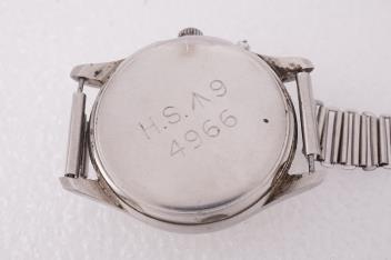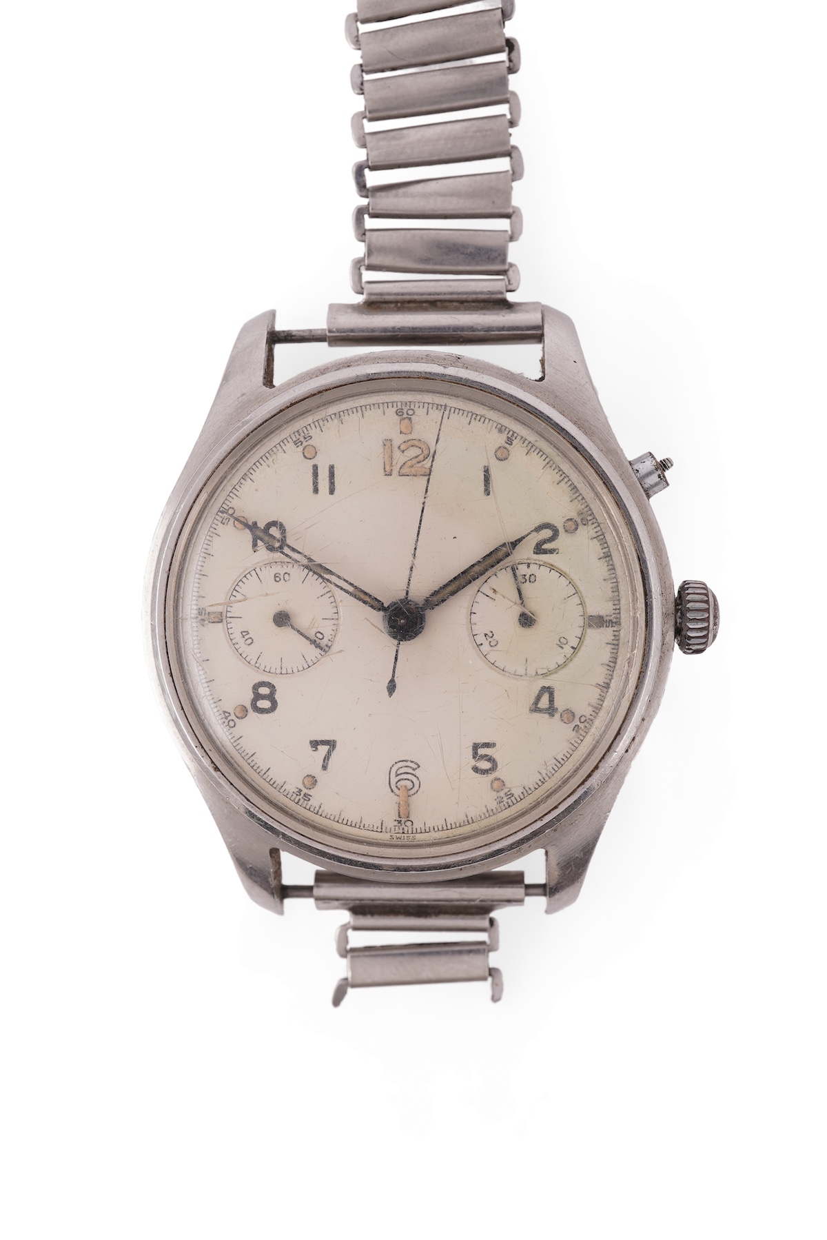 Lot 76 , A WWII stainless steel British Military Royal Navy Lemania HS9 Monopusher Chronograph manual wind wrist watch