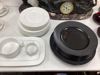 Lot 1353 , A Wirkkala for Rosenthal part dinner set to include a set of dinner plates, two tureens and six ruby glass bowls, largest 33cm in diameter