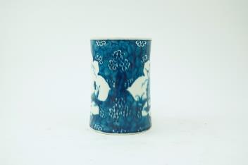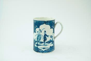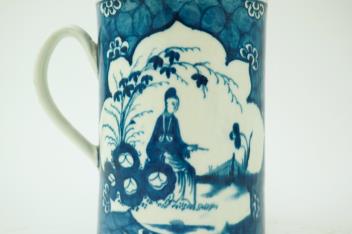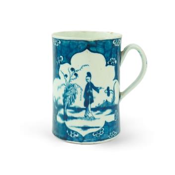 Lot 55 , A Worcester blue and white Cracked Ice pattern large cylindrical mug, c.1765-75
