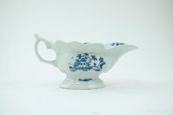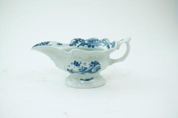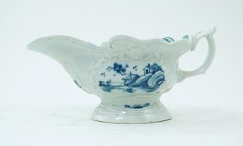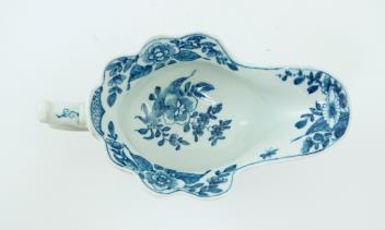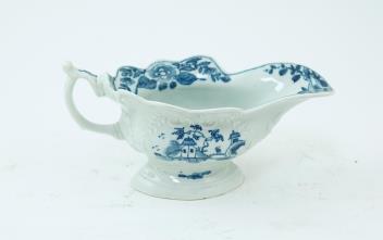 Lot 60 , A Worcester blue and white Triangular Platform pattern high footed sauce boat c.1755