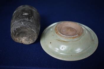 Lot 507 , A Yuan green pottery glazed dish and bucket - 10cm high