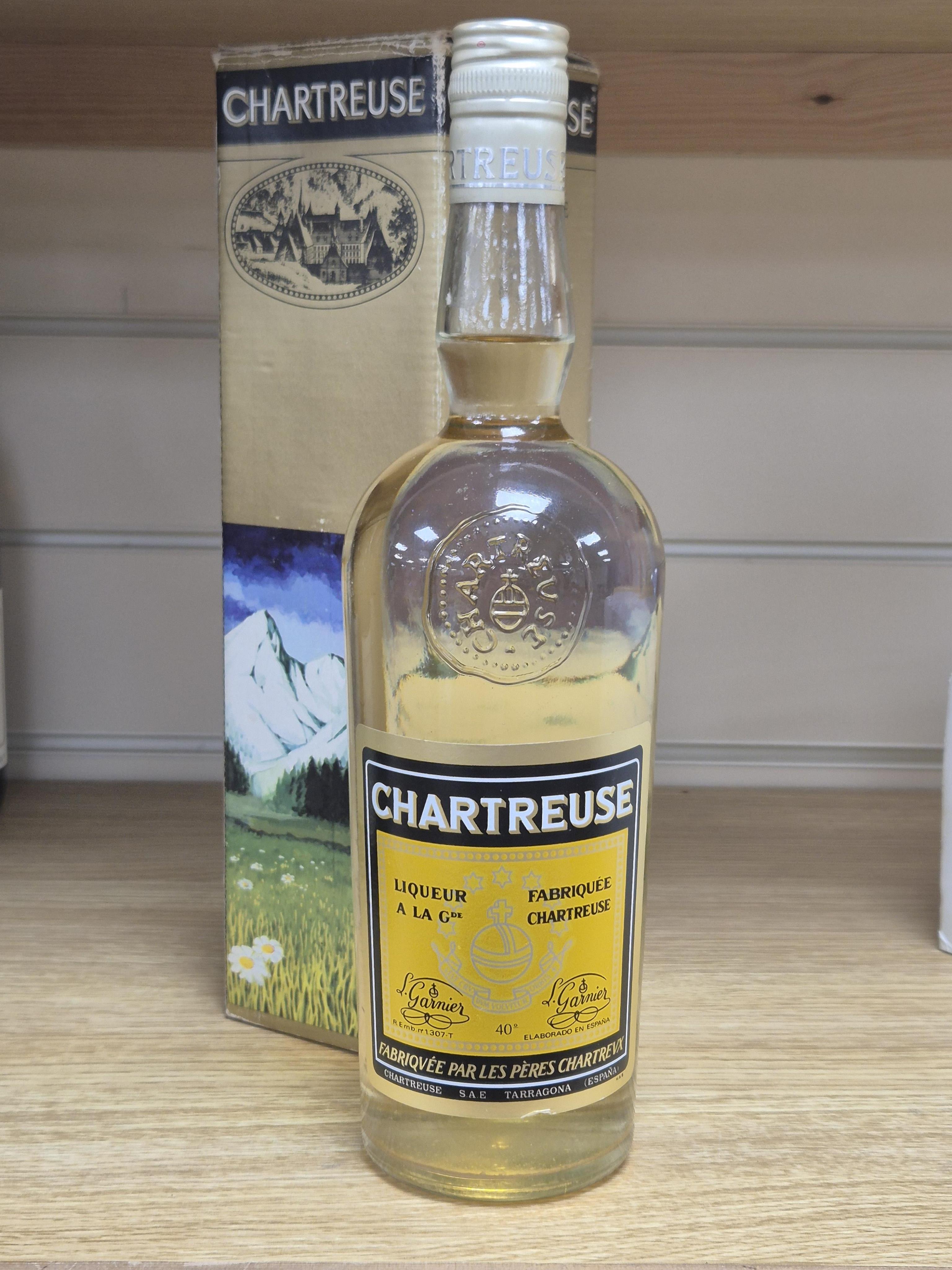 A bottle of Chartrense Yellow Tarragona, 1973-1985, boxed