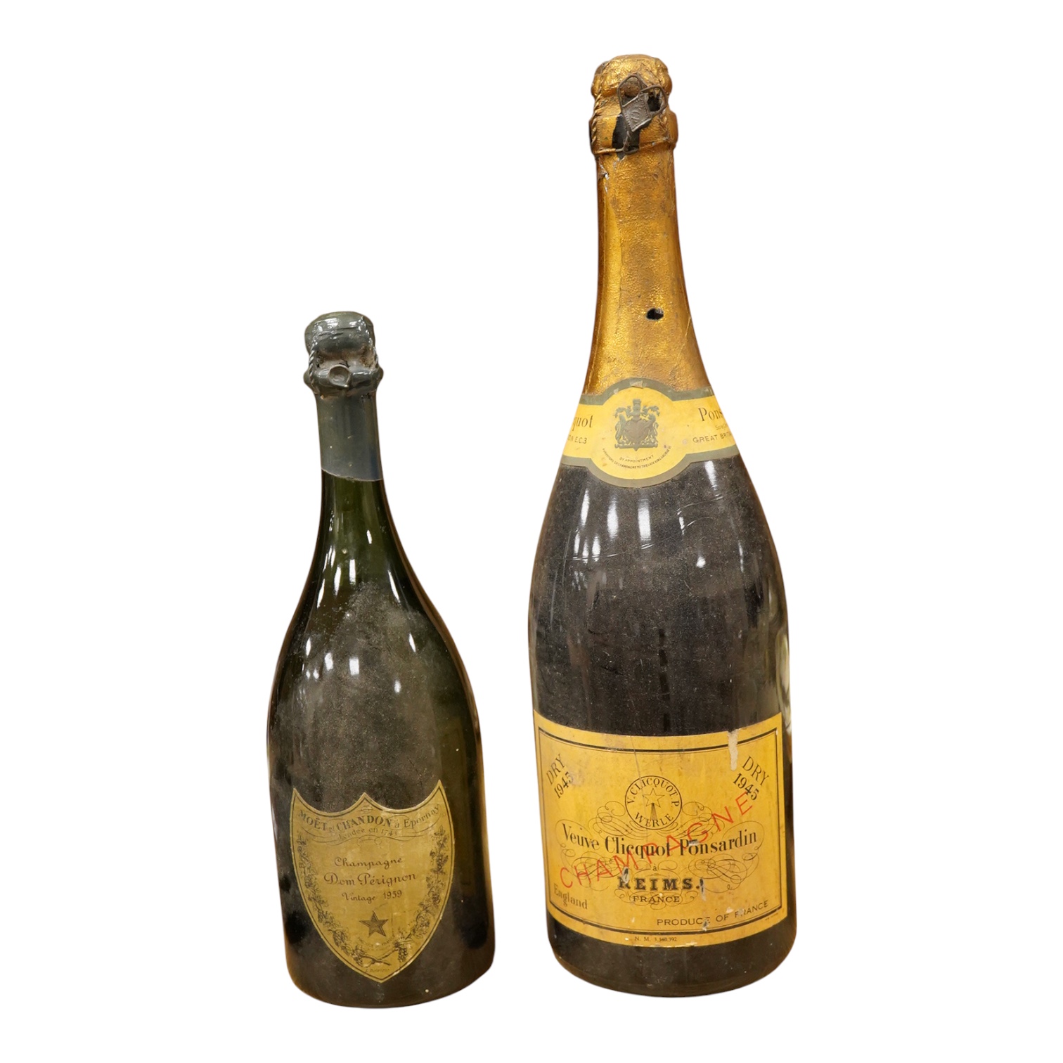 A bottle of Dom Perignon Champagne, 1959 and a magnum of Veuve Cliquot Ponsardin 1945