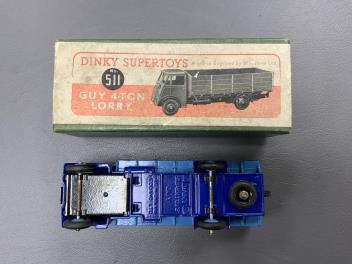 Lot 106 , A boxed Dinky Toys Guy 4 Ton Lorry (511), dark blue cab and chassis, light blue body and wheels, together with the original green illustrated box