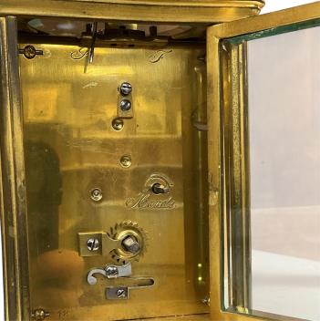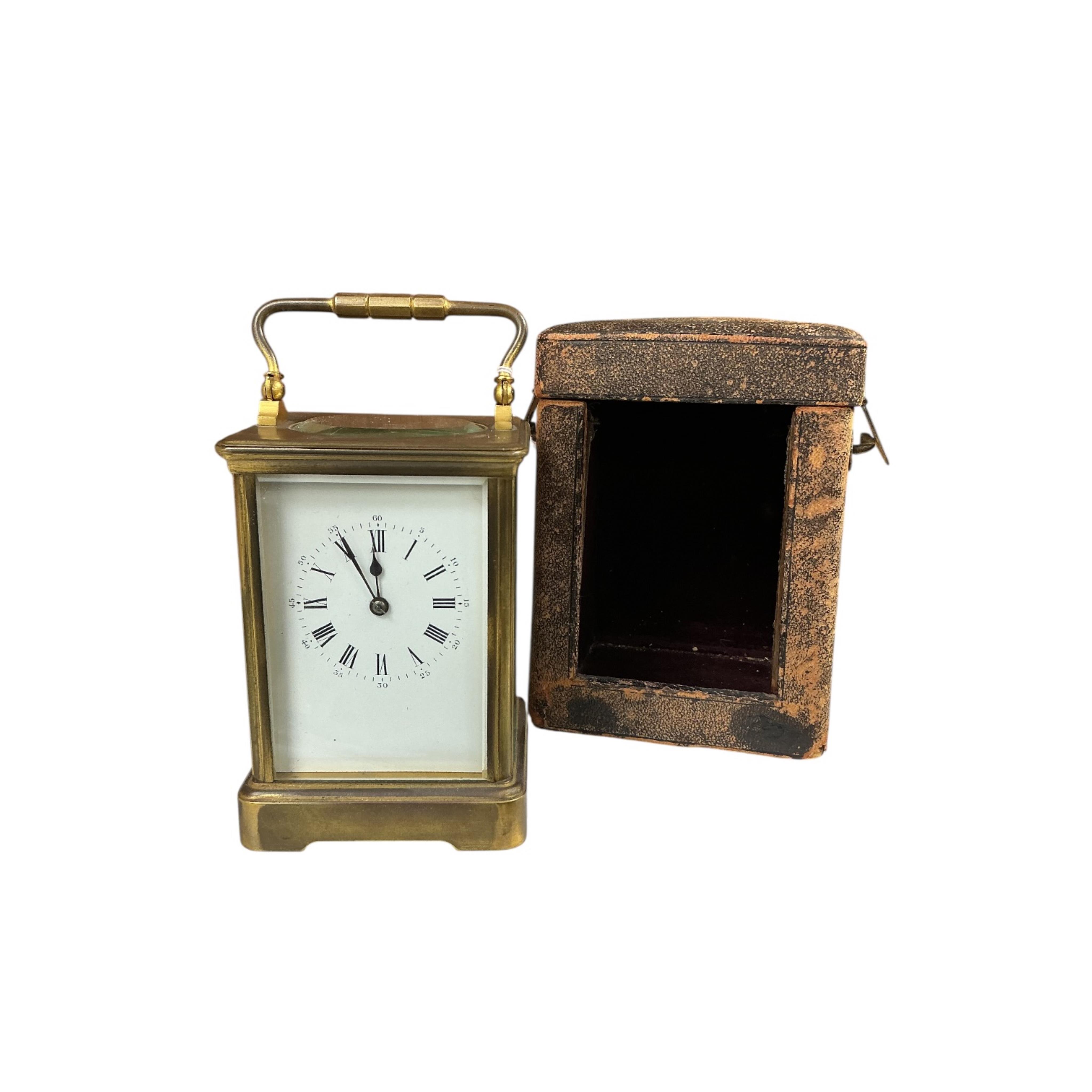 Lot 1264 , A brass carriage timepiece - 14,5cm high, with leather travel case
