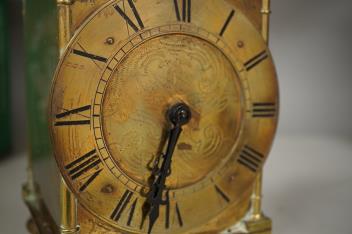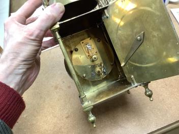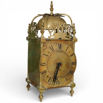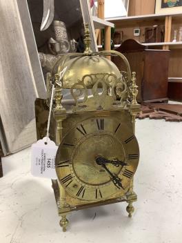 Lot 1455 , A brass lantern clock, French timepiece movement, 17cm high