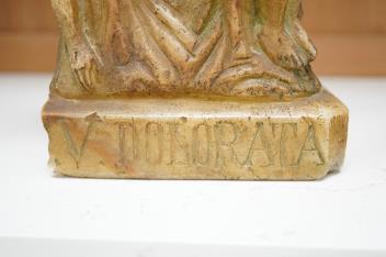 A carved alabaster figure, V. Dolorata, the Virgin Mary with Christ, height 24cm, base 13cm x 11cm,
