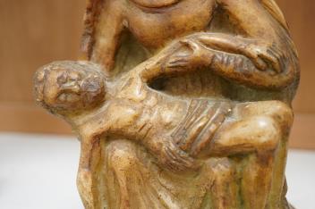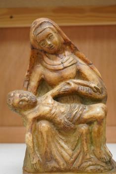 Lot 1262 , A carved alabaster figure, V. Dolorata, the Virgin Mary with Christ, height 24cm, base 13cm x 11cm