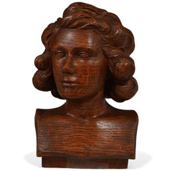 Lot 1329 , A carved oak portrait bust, Queen Elizabeth, by Peter Raymond Stout, 19cm high