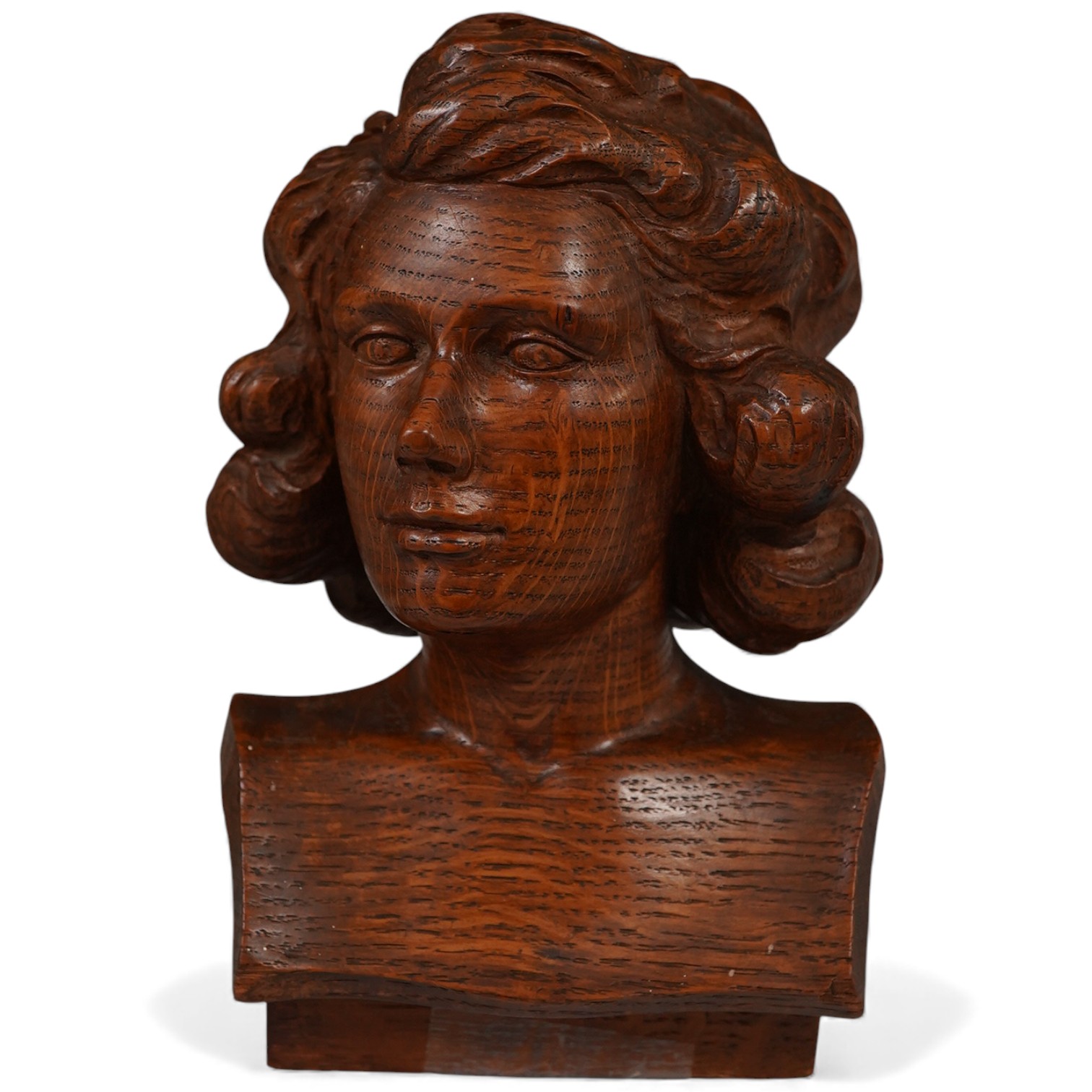 A carved oak portrait bust, Queen Elizabeth, by Peter Raymond Stout, 19cm high