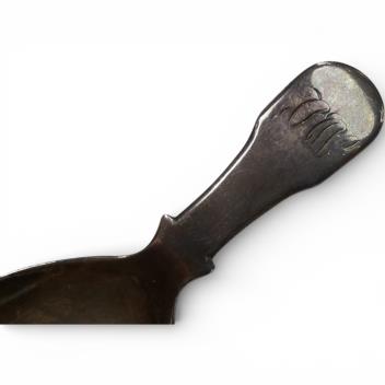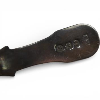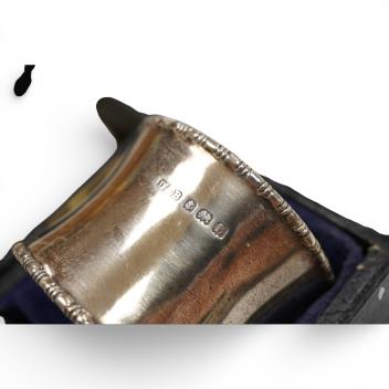 Lot 830 , A cased pair of George V silver napkin rings, Docker & Burn, Birmingham, 1926, together with a George III silver fiddle pattern caddy spoon, by Elizabeth Morley, London, 1808.