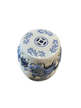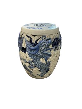 A ceramic barrel conservatory seat, diameter 27cm, height 45cm