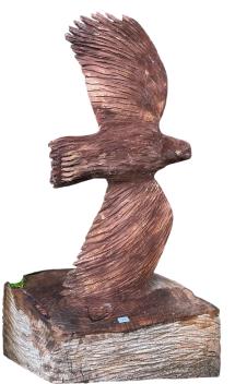 A chainsaw carving of an eagle in flight, height 170cm