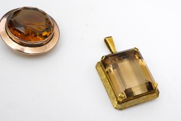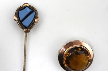 Lot 256 , A citrine brooch and pendant, and onyx stickpin