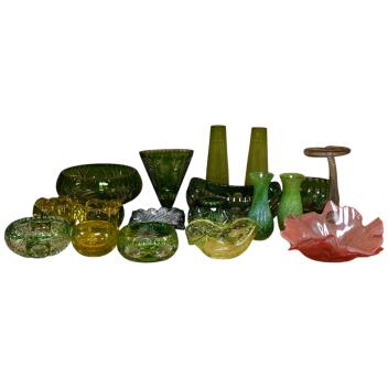 Lot 3172 , A collection of Bohemian cut glass crystal and Murano glass, comprising bowls, vases and dishes in predominantly green tones, tallest 21.5cm hight, (qty).