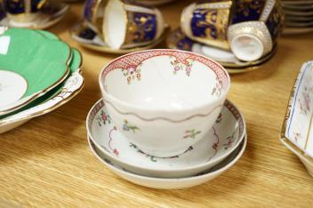 A collection of Coalport porcelain to include cups and saucers, a Meissen Pony, Meissen blue and white plate and a 19th century desk stand, largest 25cm wide