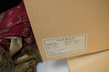 A collection of French mounted herbarium pressed plant specimens, some with labels verso