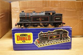 Lot 254 , A collection of Hornby Dublo railway for 3-rail running, including three boxed locomotives; an LNER class A4 4-6-2 tender locomotive, Sir Nigel Gresley 7 (EDL1), a BR Duchess of Montrose 46232 (EDL12), and a BR class N2