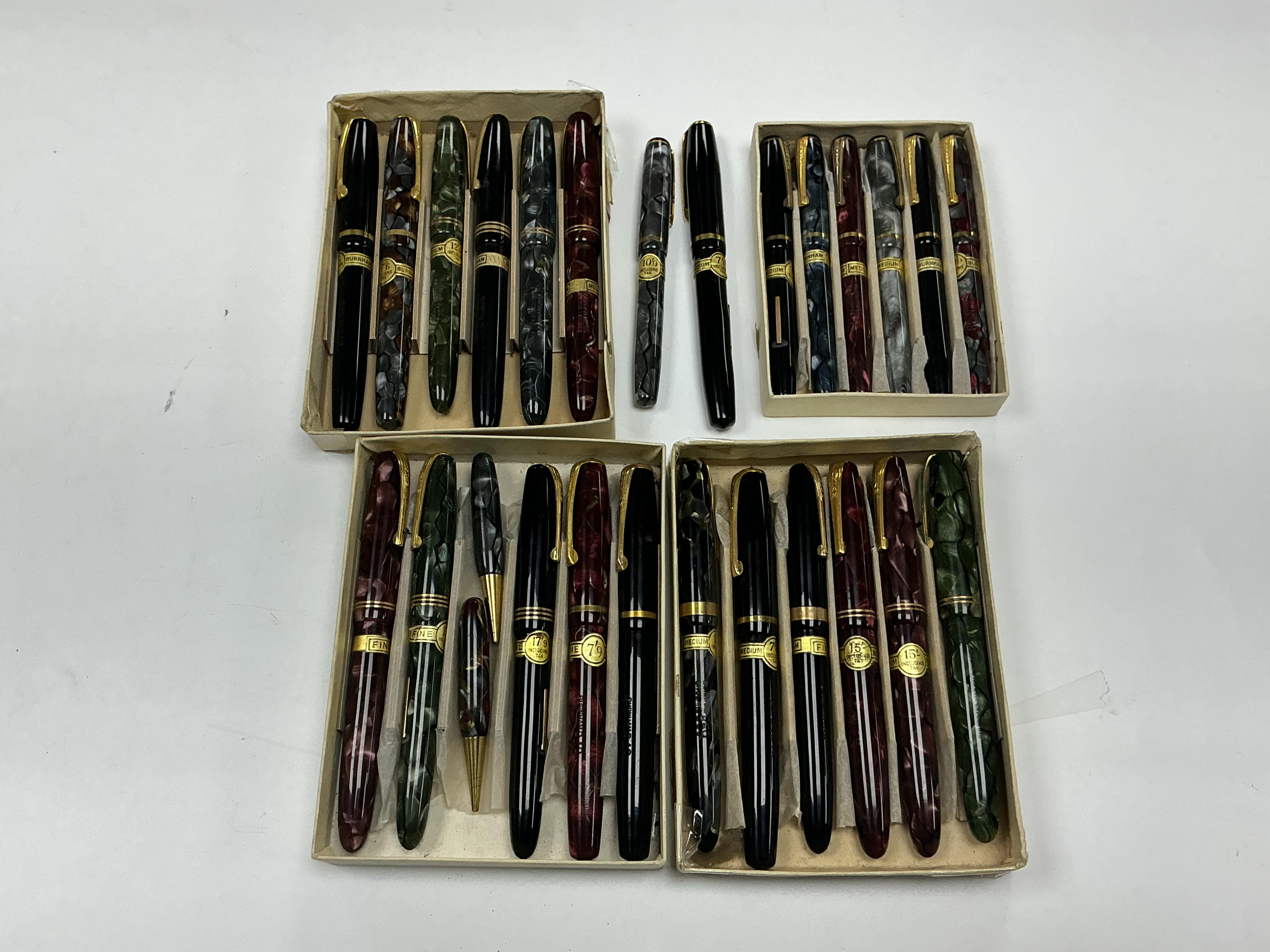 Lot 13 , A collection of N.O.S. Burnham fountain pens and pencils most with price stickers (25)