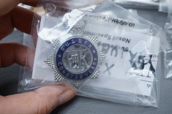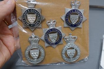 A collection of West Sussex Constabulary cap and uniform badges, inc. Special Constable & Senior Police Officer cap badges, Kings & Queens crowns, (qty).