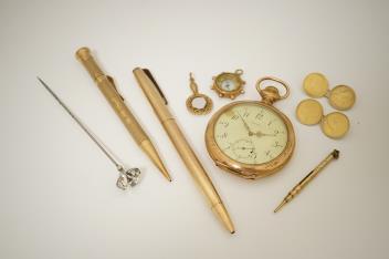 Lot 1948 , A collection of accessories, including a 9ct gold 'Everpoint' propelling pencil by S. Mordan & Co., circa 1932, British hallmarks, gross weight approximately 19 grams, initialled APS; a rolled gold ball point pen by Yard