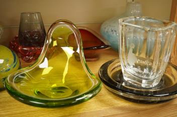 Lot 465 , A collection of art glassware to include a Murano clown, Mdina paperweight, Orrefors crystal vase and various Freeform dishes, largest 28cm wide