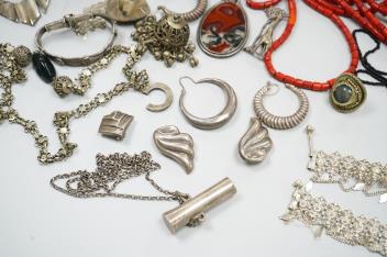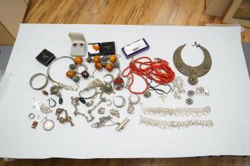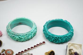 Lot 911 , A collection of costume jewels, late 19th century/early 20th centuey, including two green bakelite bangles