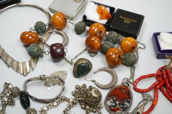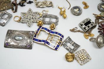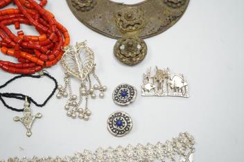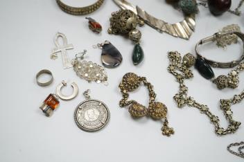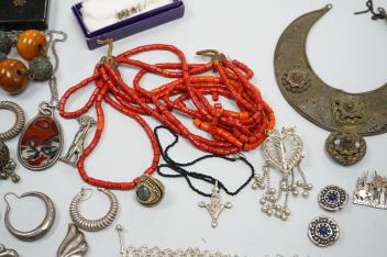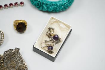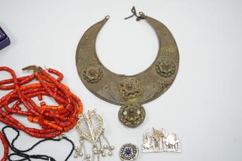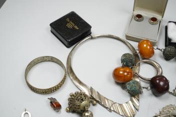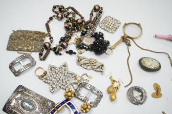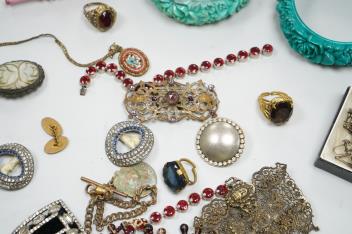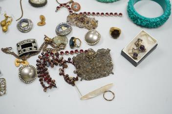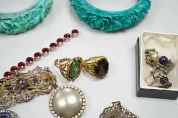 A collection of costume jewels, late 19th century/early 20th centuey, including two green bakelite bangles
