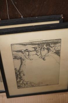 Lot 1744 , A collection of etchings and prints to include examples by C. Martyn, The Cat and Fiddle Inn, New Forest and a pair of etchings by Jackie Simpson, Graduation Hall, Narishal College, Aberdeen together with two pencil sket