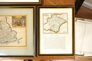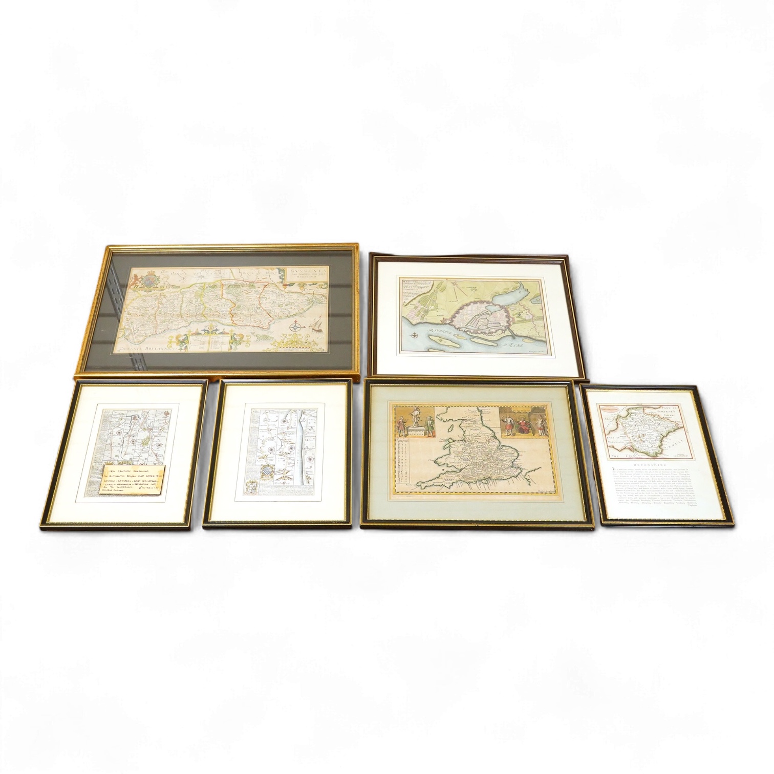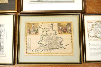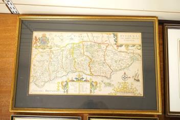 Lot 2741 , A collection of four maps to include Sussex and Devonshire, together with two 18th century road maps by Emmanuel Bowen, London to Shoreham and Bagshot to Salisbury, each framed, largest 23 x 39cm