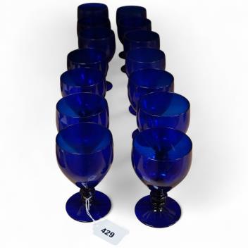 Lot 429 , A collection of fourteen Bristol blue glass rummers, largest 15cm high