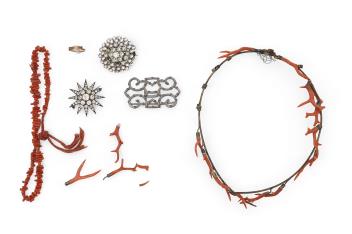 Lot 177 , A collection of jewels including a coral tiara, 19th century
