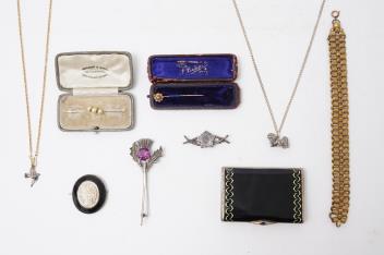 Lot 173 , A collection of jewels including an Art Deco silver cigarette case