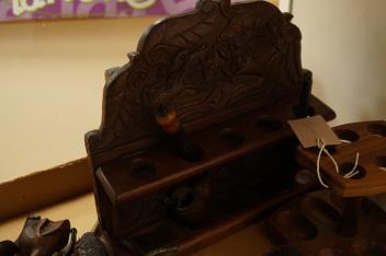 Lot 424 , A collection of smoker's novelty pipes and three pipe racks