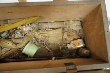 Lot 1282 , A collection of split cane fishing rods, reels, landing net etc contained in a large wooden box