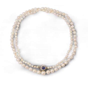 Lot 330 , A cultured pearl, sapphire and diamond necklace, 19th century and later