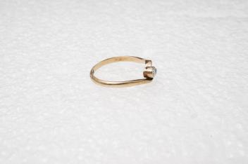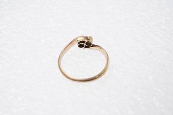 A diamond 'toi-et-moi' ring, early 20th century, collet-set with two circular-cut diamonds totalling approximately 0.20 carats, mounted in gold, size O1/2, stamped 9ct, gross weight approximately 2 grams