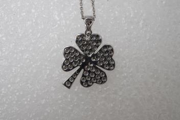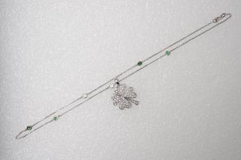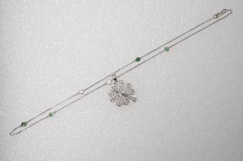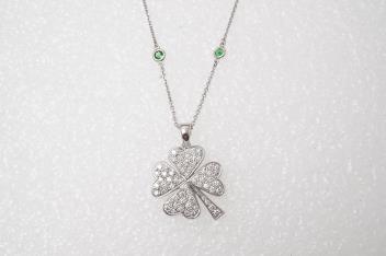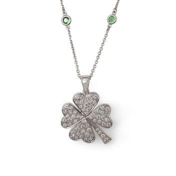 A diamond and tsavorite pendant necklace, the pendant modelled as a four-leaf clover, pavé-set with brilliant-cut diamonds totalling approximately 1.70 carats, to a chain spectacle-set with brilliant-cut diamonds totalling approximately 0.20 carats, and circular-cut tsavorite garnets, pendant length 3cm, chain length 44cm, chain stamped 750, gross weight 14 grams