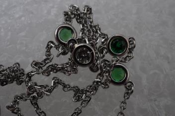 Attractive and in good condition. Pendant unmarked and untested, likely white gold (like chain), or possibly platinum, but not possible to guarantee which, though not base metal. Diamonds bright and lively, pendant nicely made.