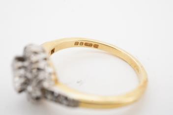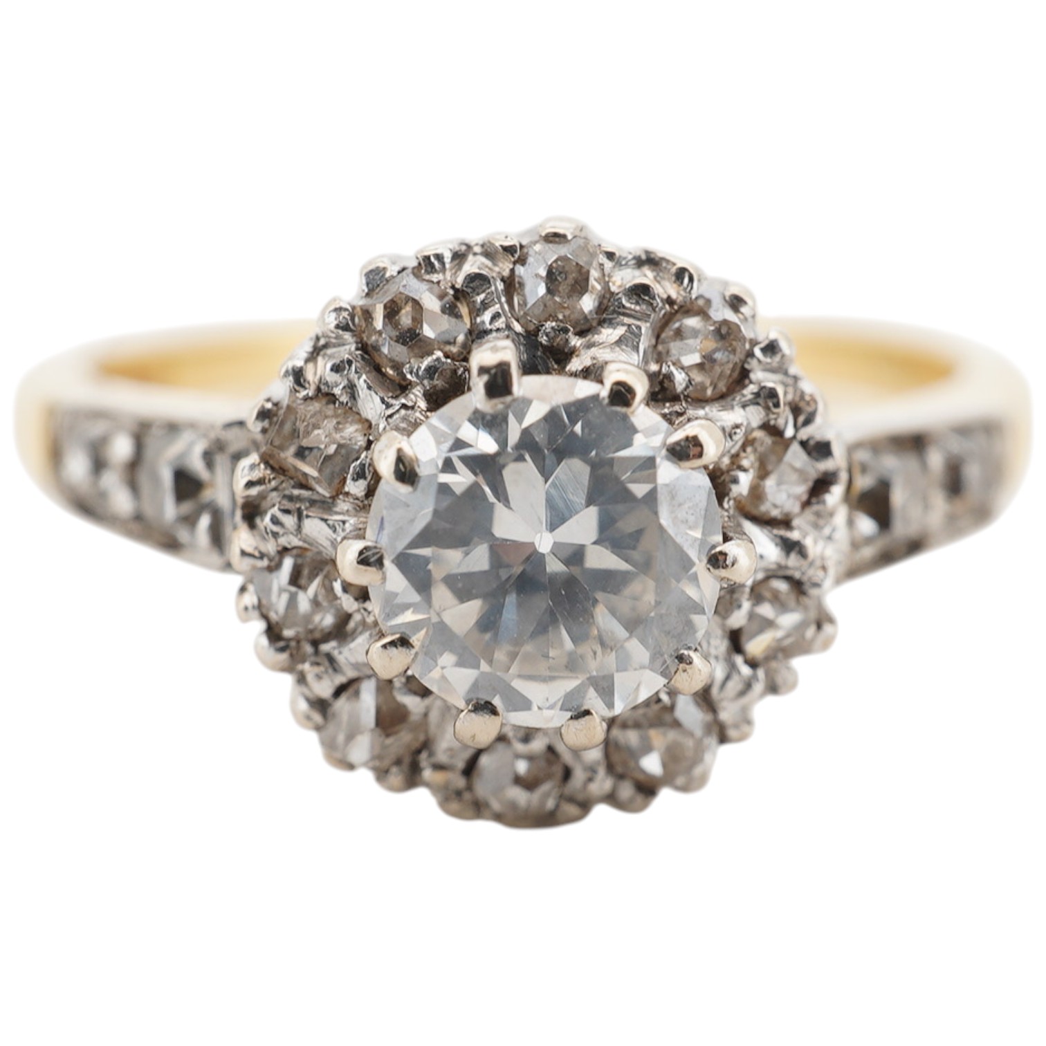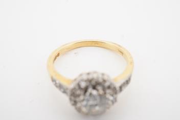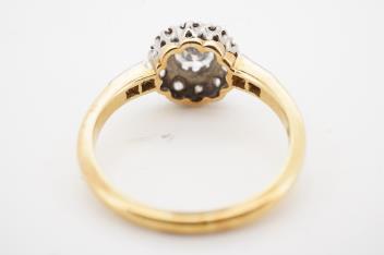 Lot 1133 , A diamond cluster ring, set with a brilliant-cut diamond weighing approximately 0.50 carats, to a border and shoulders set with circular-cut diamonds and peruzzi-cut diamond shoulders totalling approximately 0.35 carats,